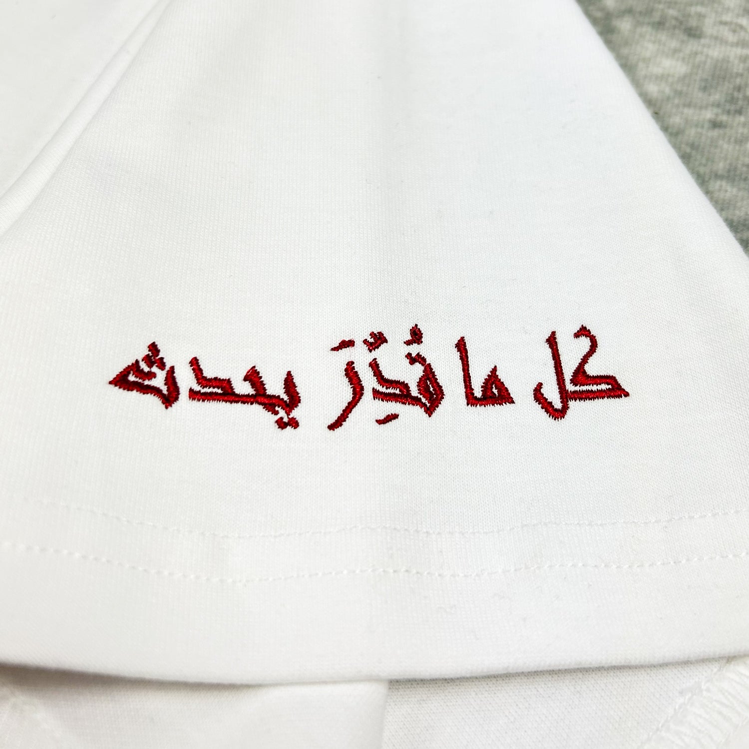 Arabic: كُلُّ مَا كُتِبَ سَيَحْدُثُ – "Everything that is destined will happen"